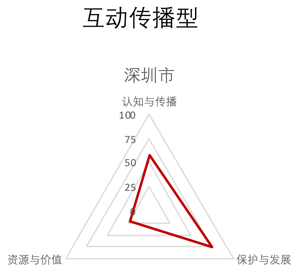 深圳在自身资源相对较少的情况下,依然凭借良好的保护发展与认知传播得分取得了较高的排名。