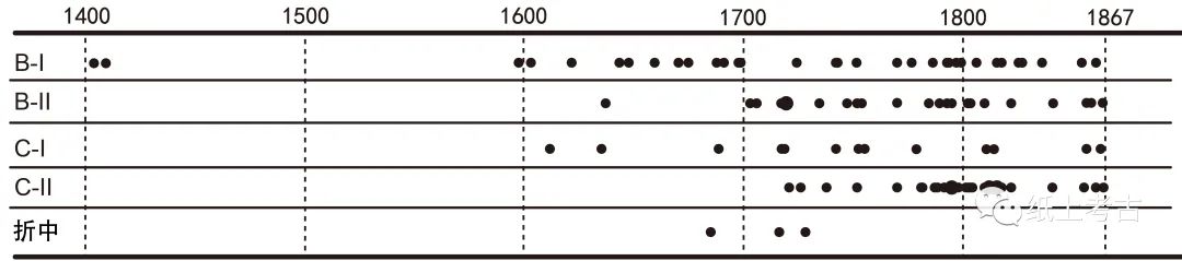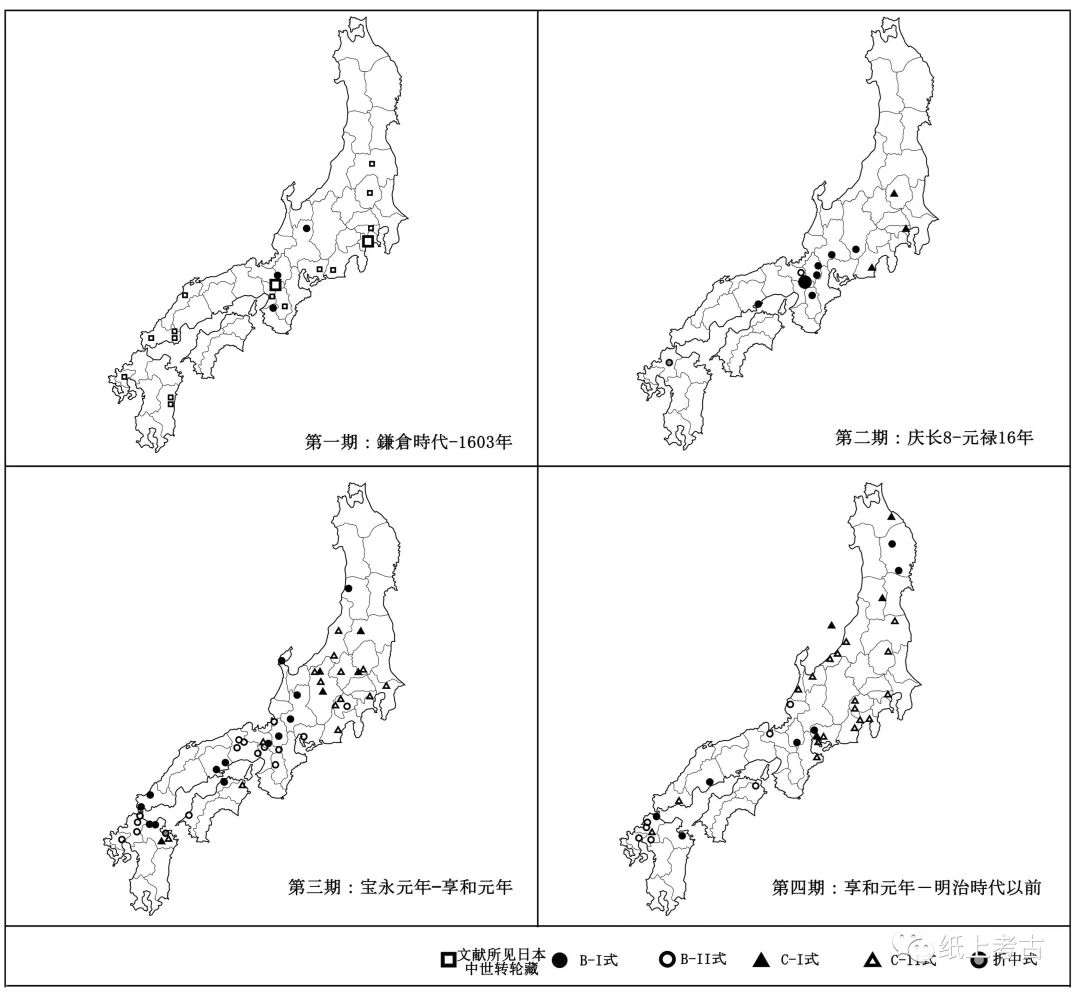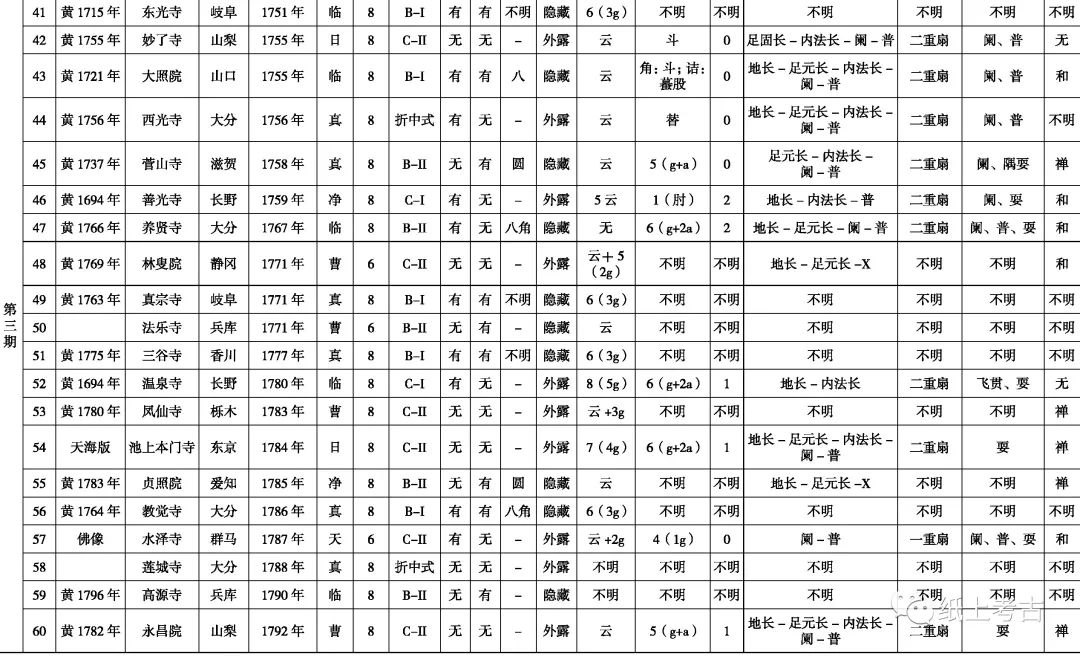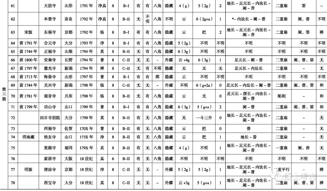 本部分将基于现有形制已知的日本转轮藏遗构,在前文的型式划分基础上考察各型式转轮藏的时代分布,并着眼于转轮藏构造特点和细部形制特征,同时结合日本中近世对外交流史、佛教发展史等背景因素,尝试对转轮藏的时代变迁进行分期。